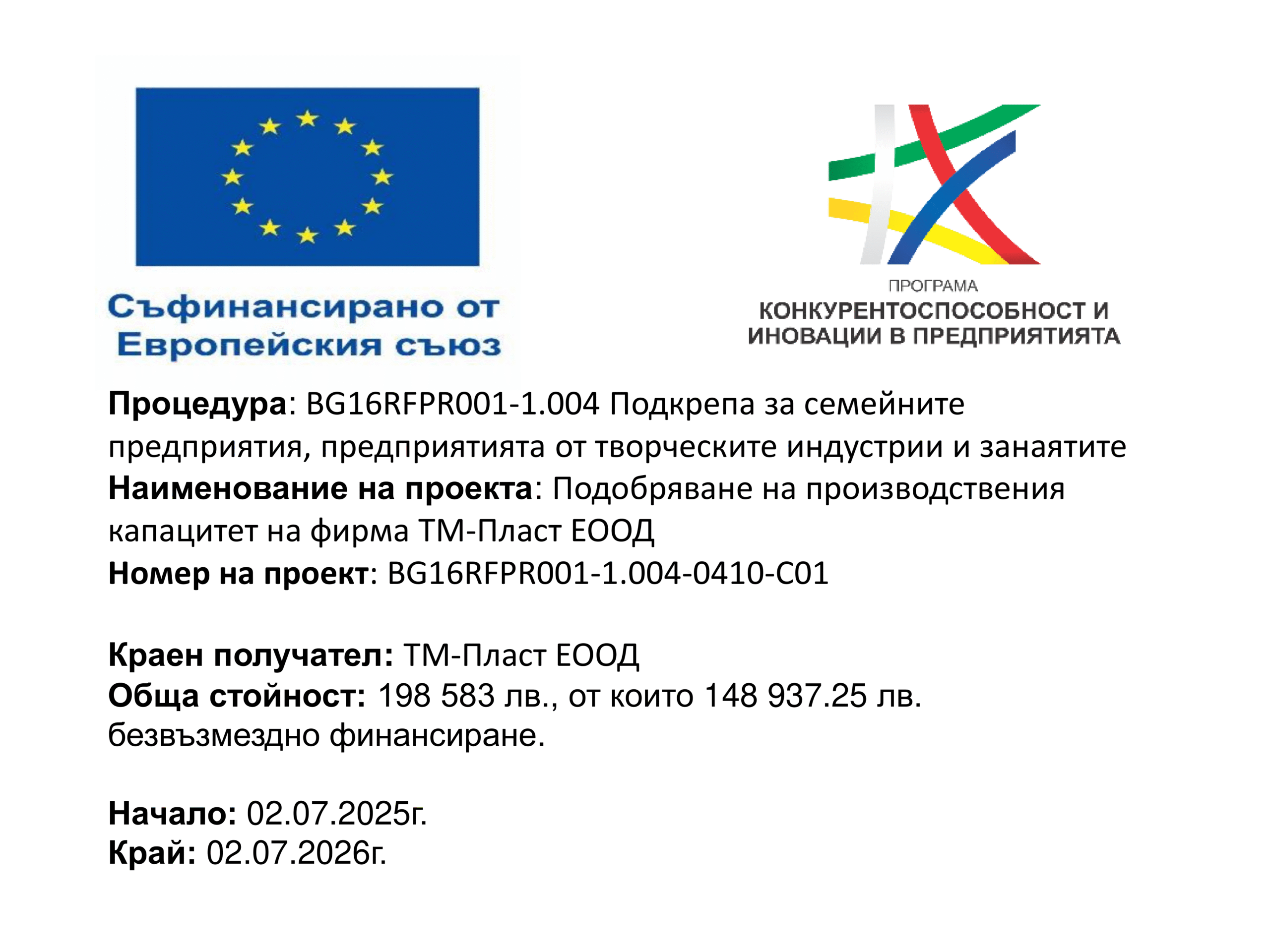 Проект: Подобряване на производствения капацитет на фирма ТМ-Пласт ЕООД